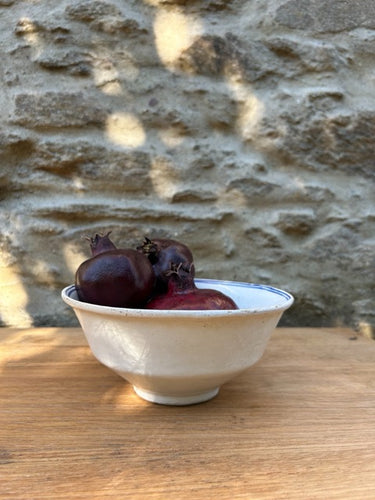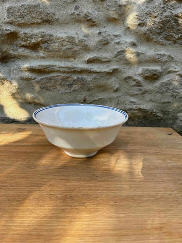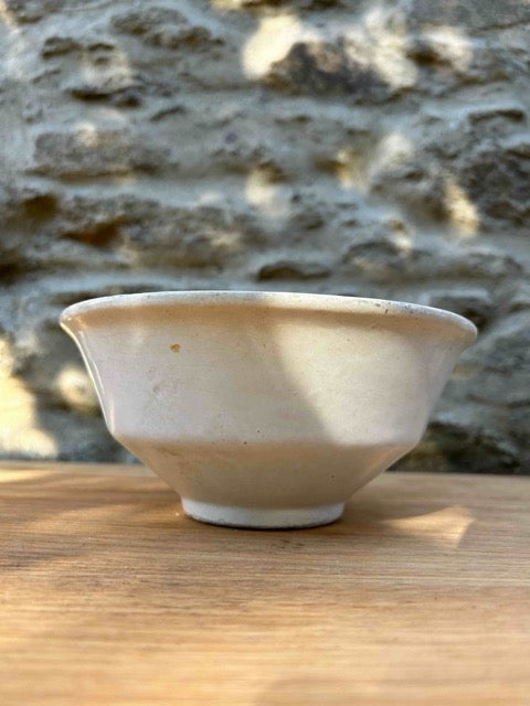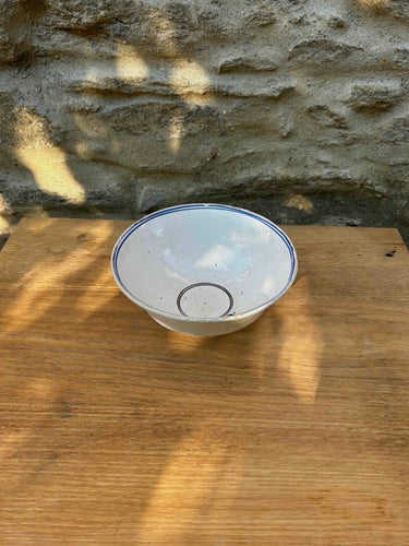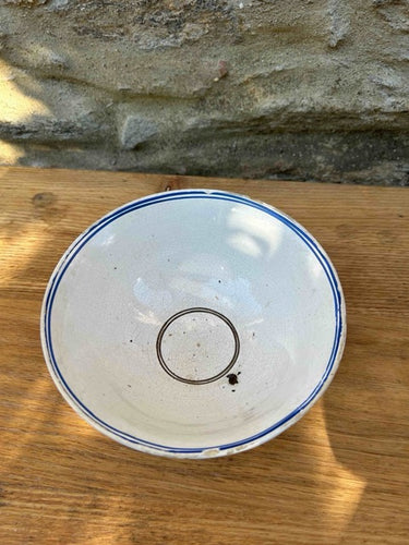 Taça em faiança, com decoração muito simples. Peça de loiça para decoração ou serviço, com marcas do tempo.