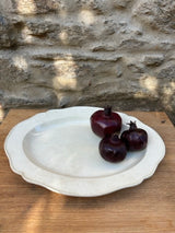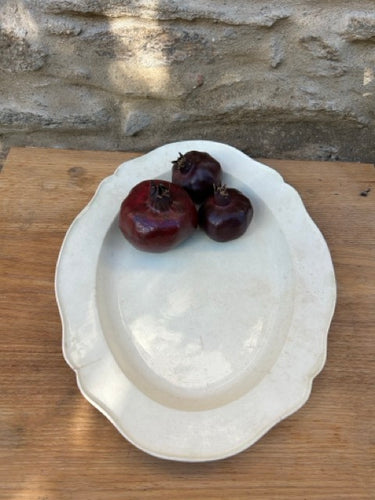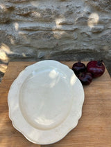 Travessa oval de cor branca, em cerâmica vintage. Acabamento rústico, com textura craquelada, característica das peças antigas. Peça decorativa e funcional. Apresenta marcas do tempo.