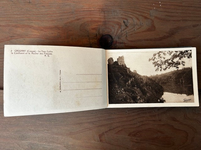 Álbum Vintage com 12 Postais Destacáveis, com tema de Crozant – Coleção Francesa. Interessante para colecionadores e apreciadores de arte vintage.