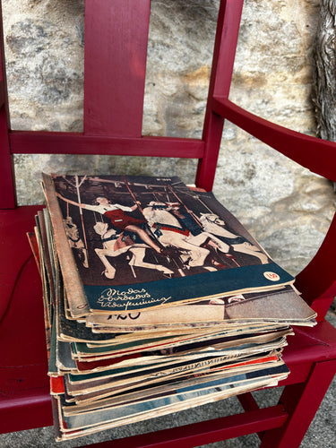 Brochura periódica e colecionável de moda feminina dos anos 1950, com ilustrações clássicas estilo vintage.